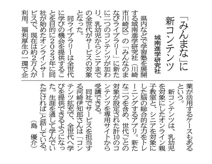 昨日(2026年4月22日)、神奈川新聞において、「みんなのまなびライブラリー」に関する紹介記事が掲載されました。